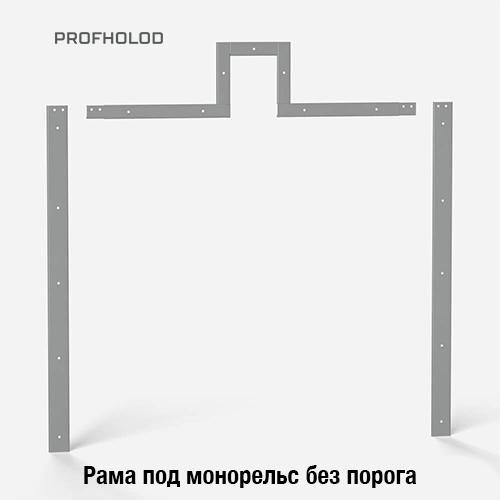 Дверные рамы под монорельс устанавливаются на сэндвич-панели или кирпичную стену. Ширина и высота проема под монорельс зависят от габаритов изделий, которые будут перемещаться по монорельсу. В базовой комплектации к дверям с проемом в раме под монорельс идет так же ПВХ завеса по размеру проема.