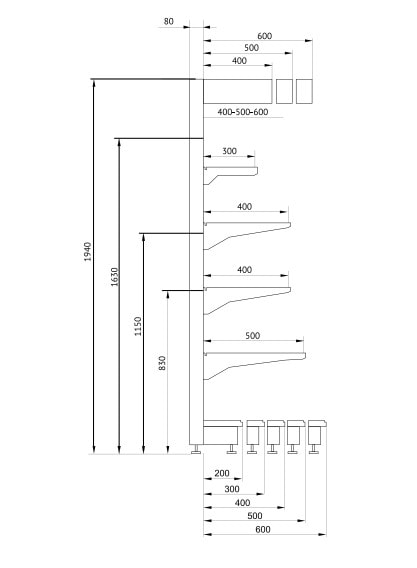 Все необходимые комбинации для минимаркета:- Линейные стеллажи
