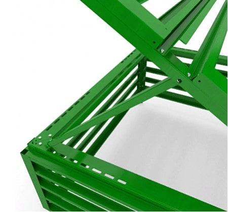 Несущий каркас сочетает высокую жесткость и эстетичный внешний вид благодаря обшивке по углам декоративными элементами. В основе рамы заложены конструктивные элементы из металла толщиной 2 мм, скрепленные при помощи болтовых соединений М6 и М8 с использованием усиливающих раскосов и уголков. Преимуществом перед аналогичными моделями других производителей станет полная разборность конструкции и как следствие меньшая площадь занимаемого места и легкость при транспортировке.