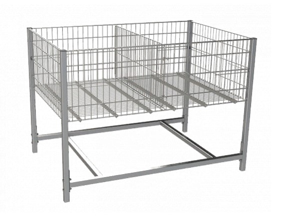 Сетчатая конструкция стола оснащена регулирующимся по высоте дном и может быть дополнительно укомплектована перегородкой. Максимальная глубина корзины - 40 см. С помощью дна можно регулировать глубину корзины от 8 см до 40 см (4 положения дна).