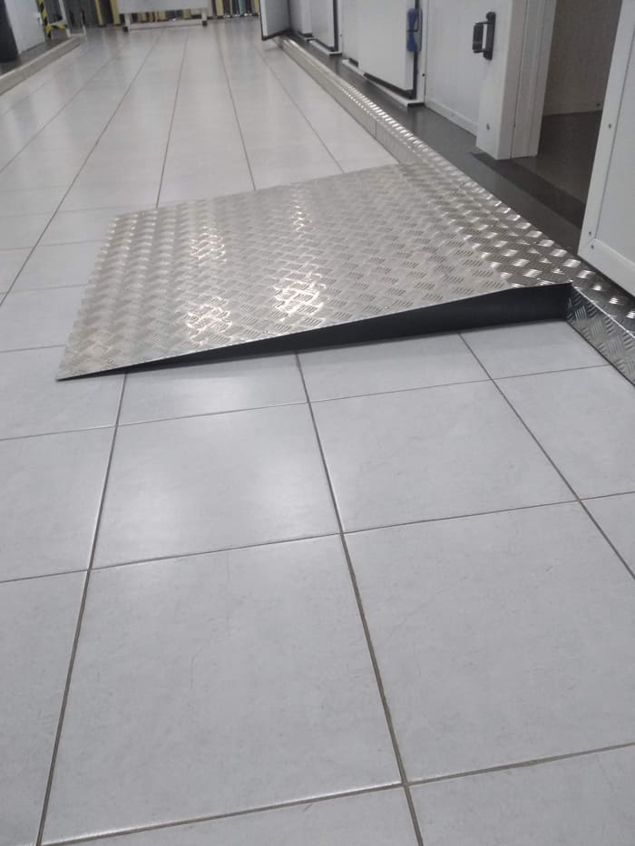 ПрофХолод производит пандусы двух типов: стационарный и накладной. Стационарный пандус устанавливается к дверям с безпороговой рамой. Накладной пандус оборудован дополнительными ручками, для удобства перемещения. В безпороговых низкотемпературных дверях в пандус монтируется ПЭН 40 Вт/м для предотвращения промерзания нижнего уплотнителя к снованию пандуса.