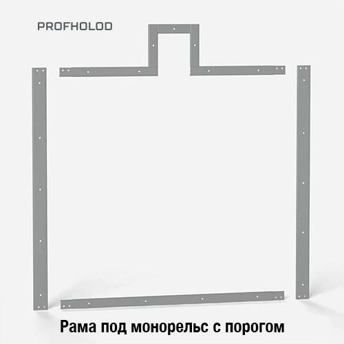 Дверные рамы под монорельс устанавливаются на сэндвич-панели или кирпичную стену. Ширина и высота проема под монорельс зависят от габаритов изделий, которые будут перемещаться по монорельсу. В базовой комплектации к дверям с проемом в раме под монорельс идет так же ПВХ завеса по размеру проема.