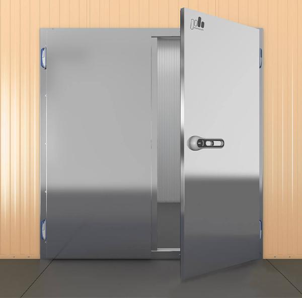 Для камер шоковой заморозки с температурным режимом от -20˚C до -35˚C толщина дверей должна быть более 100 мм. Дверь необходимо оборудовать ПЭНом обогрева металлической рамы и желательно ПЭНом уплотнителя двери. В беспороговых дверях в пол устанавливается утепленный порог из нержавеющей стали.