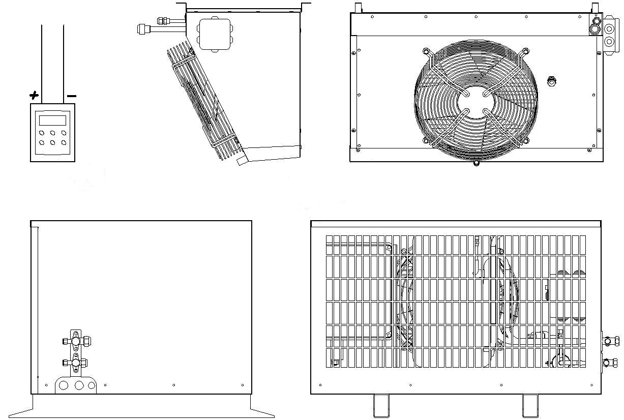 Наружный блок холодильной машины может быть установлен на холодильной камере (или на полу в малопыльном помещении) в сухом помещении при температуре окружающего воздуха от 12 до 40С и относительной влажности от 80 до 40% соответственно.