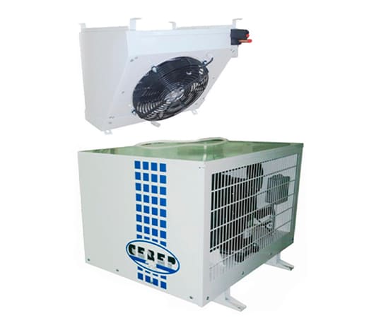 Это удобная модификация холодильной сплит-системы серии GS, состоит из внутреннего блока – воздухоохладителя (испаритель, который монтируется внутри холодильной камеры на потолочную панель), и наружного компрессорно-конденсаторного блока (предназначен для монтажа на любую горизонтальную поверхность - крыша холодильной камеры или склада, пол рядом с камерой или на удалении, в том числе вне помещения).