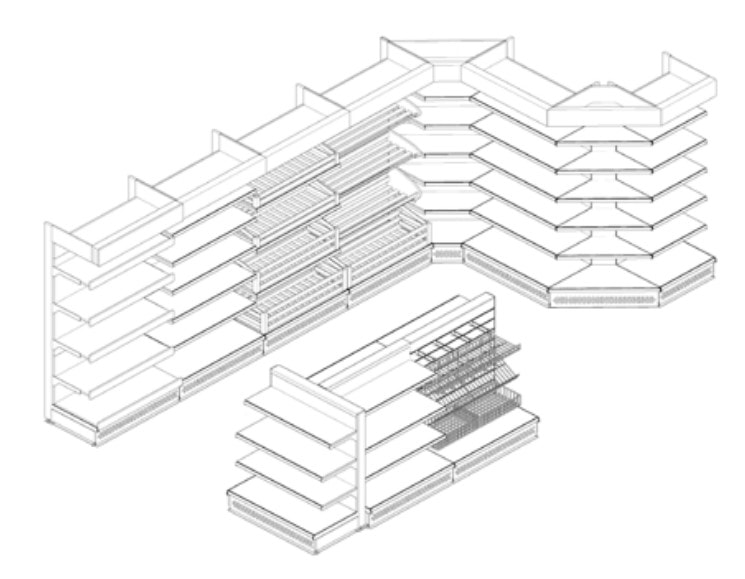 Все необходимые комбинации для минимаркета:- Линейные стеллажи