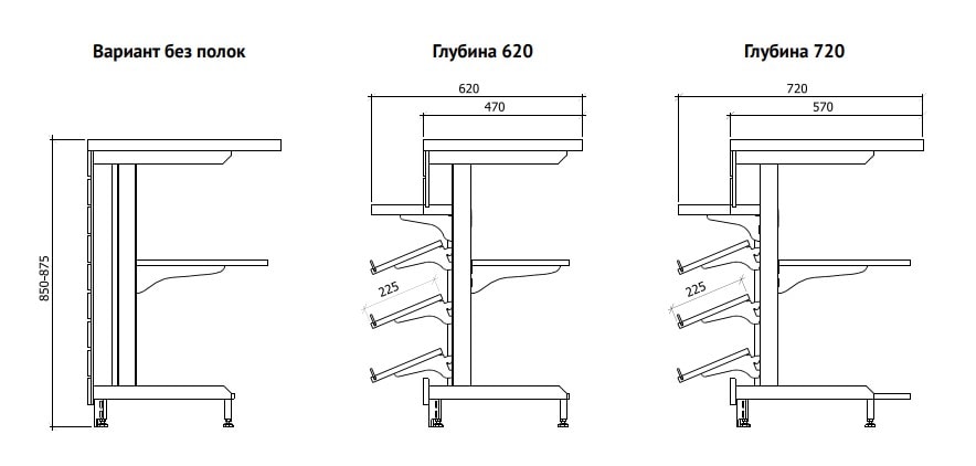 - Покрытие из нержавейки на столешнице и полке для сумок