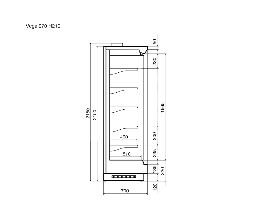| Высота витрины, мм | 2100 | ||||