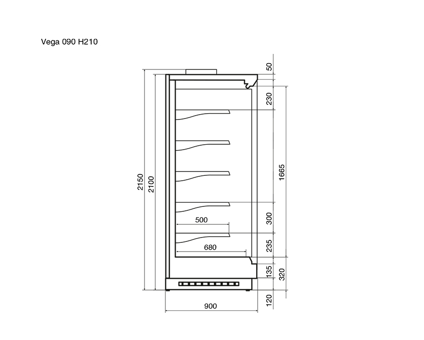 Охлаждаемый стеллаж Vega отлично вписывается в интерьер разных стилей. Легкий доступ к продукту и неотразимая эстетика создают превосходное впечатление у покупателя.