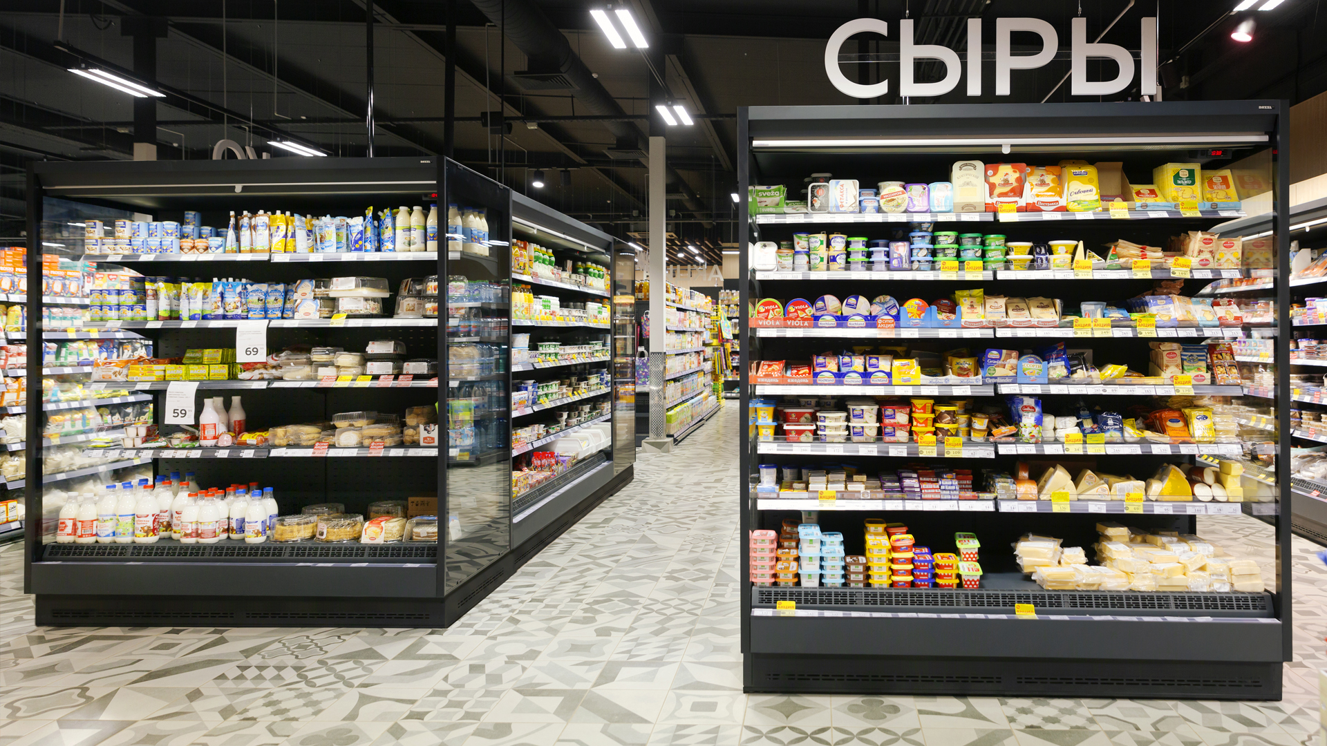 - 5 рядов полок с ценникодержателями