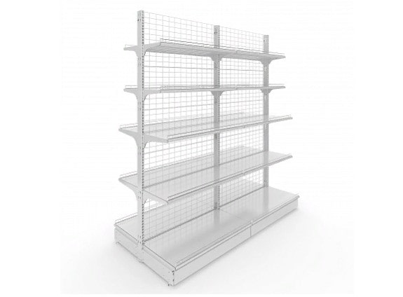 Расположение сетчатой стенки по центру стойки позволяет сдвинуть полки вглубь стеллажа, таким образом экономя пространство торговых площадей, а смещение центра тяжести нагруженных полок в сторону стойки увеличивает грузоподъёмность стеллажа.